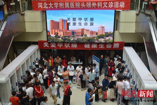 为提高百姓对甲状腺疾病的了解,帮助尚未诊断的甲状腺疾病患者接受科学的疾病常识及治疗理念。2018年06月12日,河北大学附属医院头颈外科多名专家在门诊大厅举行以“关爱甲状腺,健康生命腺”为主题的义诊活动。