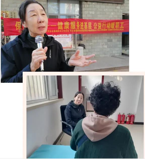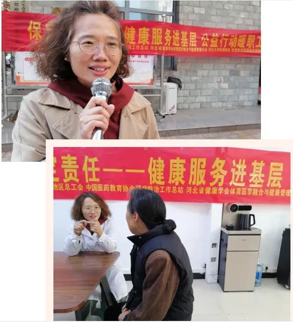 10月23日,中国医药教育协会学雷锋志愿服务5队2名队员:“保定责任”莲池区职工健康工程健康专家、主任医师、河北大学附属医院(以下简称“河大附院”)妇科马幼菊,副主任医师、河大附院老年医学科骨干医师赵红梅,走进联盟路街道福地水岸社区,借助现场及社区工作群,面向社区工作者、志愿者,社区楼院长、居民等四百余人,以《做好中老年女性保健 做好秋冬季综合疾病预防》为主题,进行公益文化健康宣讲、咨询、义诊服务。保定市妇联常委、“保定责任”莲池区职工健康工程策划人魏巍全程主持,福地水岸社区书记王倩全程做服务保障。