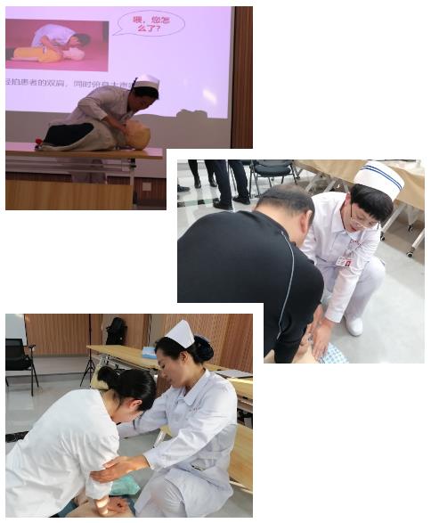 “有研究表明,中老年人、长期吸烟酗酒者、长期过度劳累者、具有遗传性心脏病或猝死家族史者、高血压高血脂糖尿病患者、肥胖者,为心脏性猝死的高危人群。”李红梅首先结合国家最新指南、结合临床、结合案例,系统宣讲了心脏性猝死诱因、识别方法,随后在安国静协同演示下,分步骤、重要点、精细化讲解了心肺复苏急救技术实施方法。“在找准按压位置后,施救者需要让自己的肩、肘、腕呈一条直线,以髋关节为轴,利用自己整个上半身的力量向下按压。”在一对一实训中,就按压发力方法,安国静不断强调。