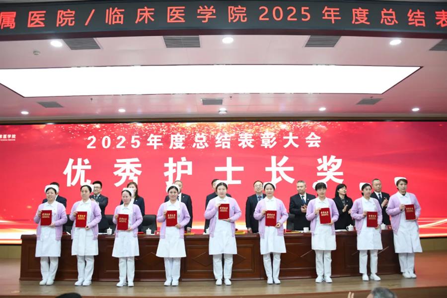 王川代表学校党委向受表彰集体和个人表示祝贺,并向附属医院全体职工过去一年的辛勤付出致以敬意和感谢。他指出,2026年是“十五五”规划开局之年,附属医院作为学校医学教育、临床医疗、科技创新和社会服务的关键载体,肩负着重要使命。他希望医院未来继续坚持党建引领,确保办学治院的正确方向;要聚焦内涵建设,不断提升医院核心竞争能力;同时应深化医教研协同,以高质量发展助力学校“双一流”建设。他期望全院干部职工进一步提振干事创业的精气神,凝聚服务大局的正能量,强化狠抓落实的执行力,以实干笃行扎实推进医院各项事业再上新台阶。