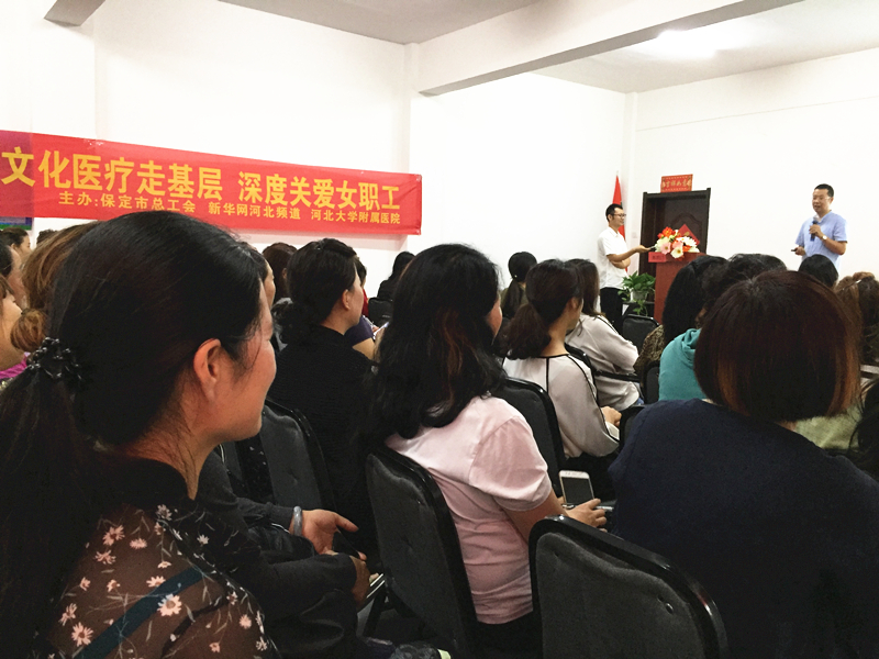 近日,“保定责任”温馨工程——女职工追踪性深度健康服务走进涞源县,健康专家、我院妇科首席医师马幼菊、中西医结合科副主任张占英、乳腺外科主任医师陈鹊汀,为一线女职工进行了“幸福的日子——关爱女性健康”公益文化医疗服务。保定市总工会女职工委员会主任支亚、涞源县人大常委会副主任、县总工会主席李凯全程参加活动。