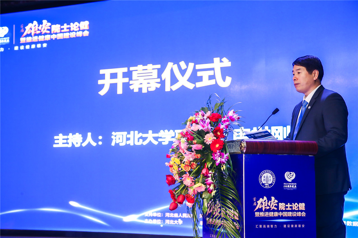 河北大学副校长、我院党委书记申世刚主持了开幕式。王陇德院士、我院院长张海松共同为“雄安院士论健”公益讲坛揭牌,与会院士、专家、学者一同启动了“健康医学教育资源库”。