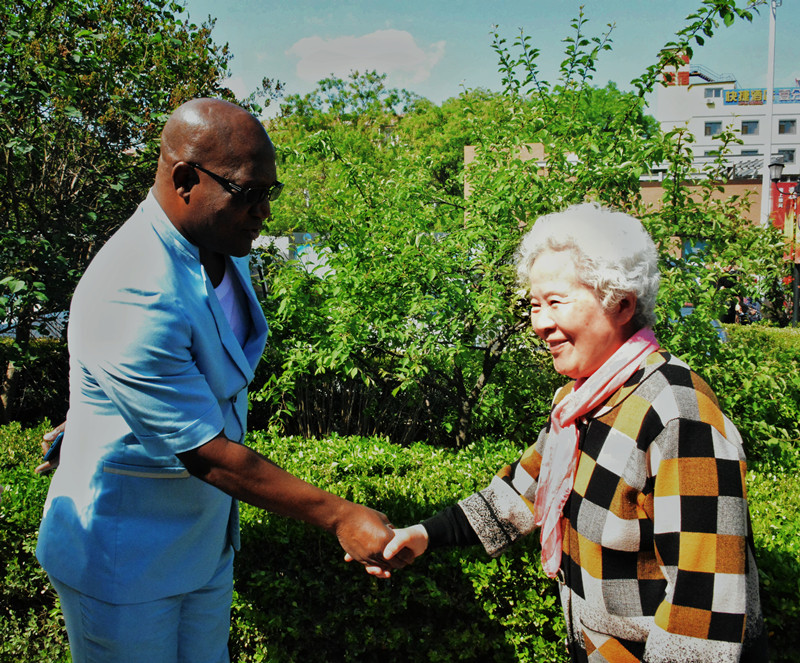 参观期间,达哈布院长巧遇我院妇产科专家赵芙蓉教授。赵芙蓉教授曾于1977年10月—1979年10月参加中国援非医疗队在扎伊尔(现刚国金)开展的援外医疗工作,两人进行了亲切交谈,盛赞中刚友谊。