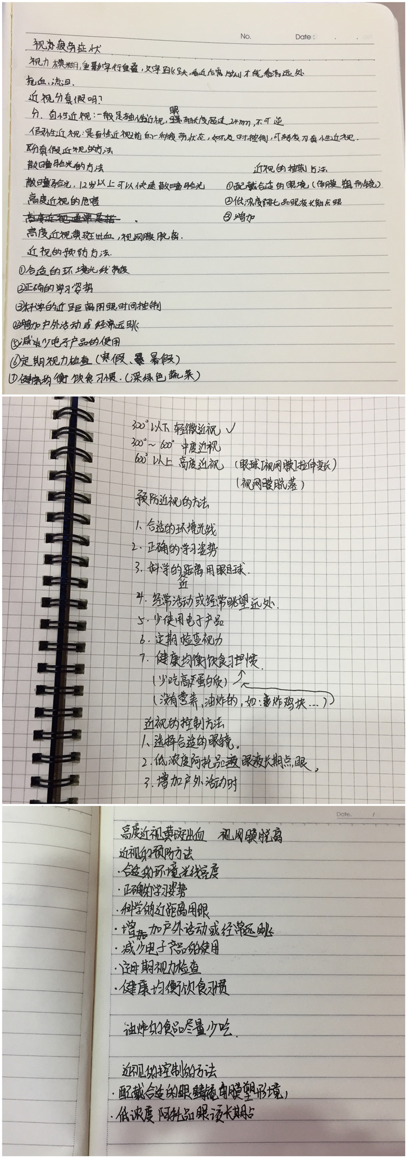还没有患得近视时,如何预防近视?李军说,第一,学习时要有一个光线适当的环境。无论是在学校上学,还是在家中写作业,光线环境很重要,不能过亮也不能过暗。特别提示大家,在家中写作业,台灯放置在自己的左前方,同时室内日常照明顶灯也要打开,不能仅仅是置身于台灯之下做功课。不要在车上看书,不要走路看书,不要在摇晃的光线环境下看书。第二,要有正确的听讲、写字姿势,正确的姿势可以让同学们远离近视,不患得近视。第三,要科学地控制用眼时间。在学校,每节课下课之后,要给眼睛放松。走出教室,向远处望一望,是给眼部放松的好方法。回到家中,有的同学趁着家长不注意抓紧时间用iPad浏览与学习无关的信息,或者和家长讲条件用iPad玩儿游戏,这样你的眼睛肯定会比别人的眼睛更累,肯定比别人的眼睛患得近视的机会更高。第四,业余时间要经常做户外活动,建议同学们每天尽可能进行两小时户外活动。第五,定期检查视力。要有一到寒假、暑假,首先去医院检查视力,为自己做保健的意识。有的同学早已发现自己看不清,但不敢和家长说,造成近视问题不但没有得到及时解决,反而延误。同学们遇到这样的情况,不要害怕,更不要躲避问题。如果是假性近视,尽早到正规医院通过散瞳还可以恢复到正常,如果诊断为真性近视也可以获取最佳的控制方法。第六,要健康饮食。多吃蔬菜、水果,对眼睛有好处的食物,零食要少吃,辣条尽量不要再吃。
