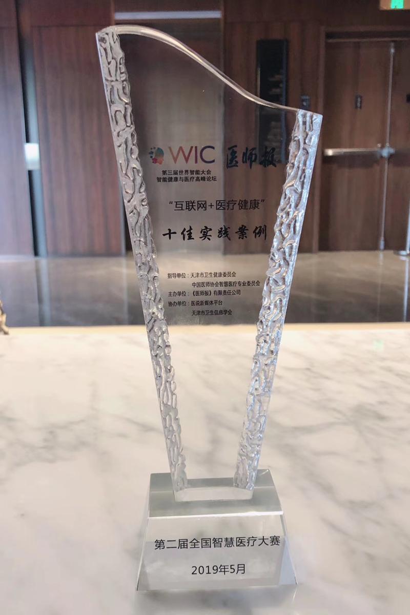 在会上,由天津市卫生健康委员会和中国医师协会智慧医疗专业委会指导,《医师报》主办,天津市卫生信息学会、医说新媒体平台协办的2019年第二届全国智慧医疗大赛进行了颁奖仪式。大赛从策划准备、申报审核、评审公示共历时2个月,共收到全国40余家医疗机构申报60多个实践案例参赛。最后评选出10名“十佳实践案例”,3名优胜奖。我院信息中心报送的“人工智能辅助诊疗在临床应用的典型案例”荣获“十佳实践案例”。此次会议对于人工智能在医疗健康领域的广泛应用有着积极而深远的意义。