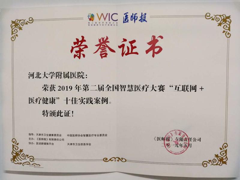 我院在2019第二届全国智慧医疗大赛中荣获十佳实践案例