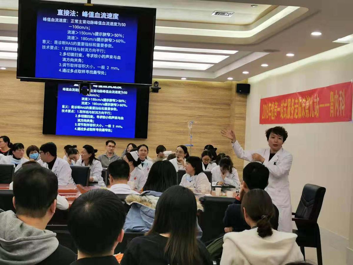 讲座历时四个小时,参会的医务人员全神贯注听着授课内容,每讲一个课题后,肾病内科医生就该课题提出系列问题,功能科医务人员通过细致解读超声报告,使临床医师获得可靠的诊断依据,惠及患者。