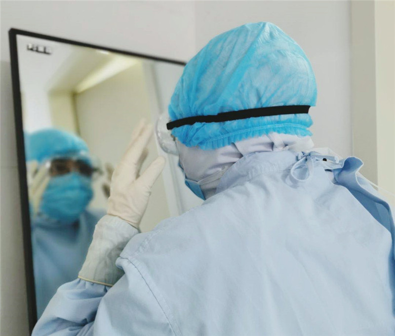 初次步入隔离病房工作的韩晓旭不免心生一丝紧张,但是她深知既然披上战袍,便是白衣战士,面对困难,更要选择无畏!她快速调整好情绪后迅速投身到工作中,与战友们一起并肩作战,交接患者、问诊、查体、观察患者病情变化、及时调整治疗方案。她在隔离病房巡诊的同时,还负责我院新冠肺炎的排查会诊工作,为发热患者诊查,提出合理化诊疗方案,保证患者及时得到有效救治。在一次下夜班后,看着镜子中自己布满红血丝的双眼,她就在心里给自己打气:“韩晓旭,我为你能够在危难之际奉献出自己的一份力量而感到自豪!加油!