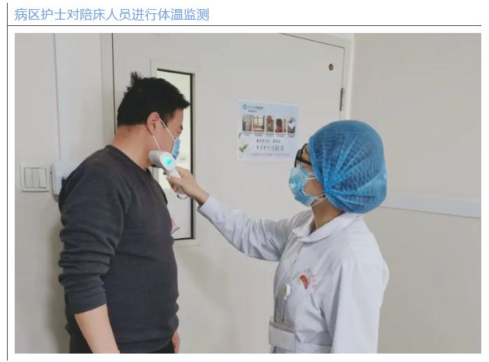 病区护士在护士长崔闪闪带领下指导患者及陪床人员正确佩戴口罩、勤洗手,严格按照规范对病区进行紫外线消毒、开窗通风,用配比好的消毒液喷洒病房各个角落、擦拭门把手,每日检查大家防护用品穿戴情况并监测患者及陪床人员体温……