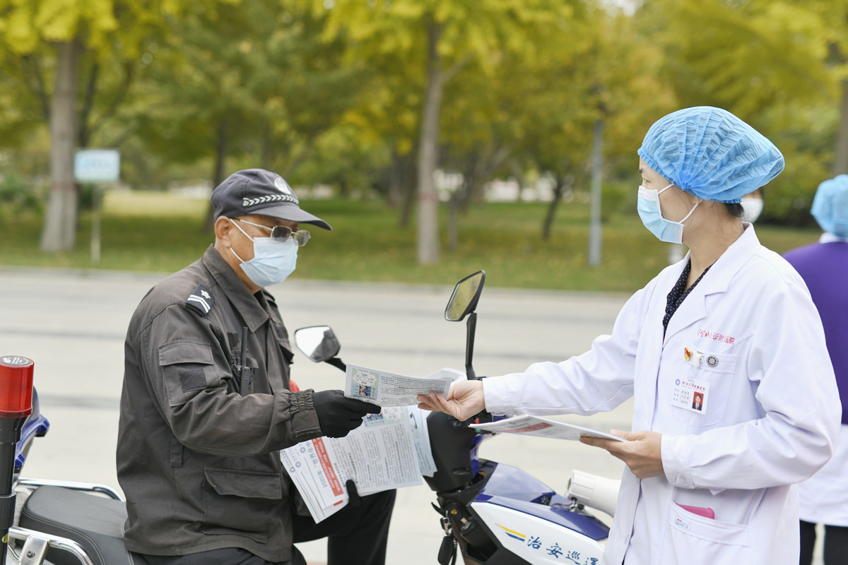 10月29日,我院神经内科主任苏立凯带领副主任李晓芳、邸卫英、凌丽等神经内科医护人员和门诊部相关人员一起到军校广场开展第15个“世界卒中日”宣传活动。