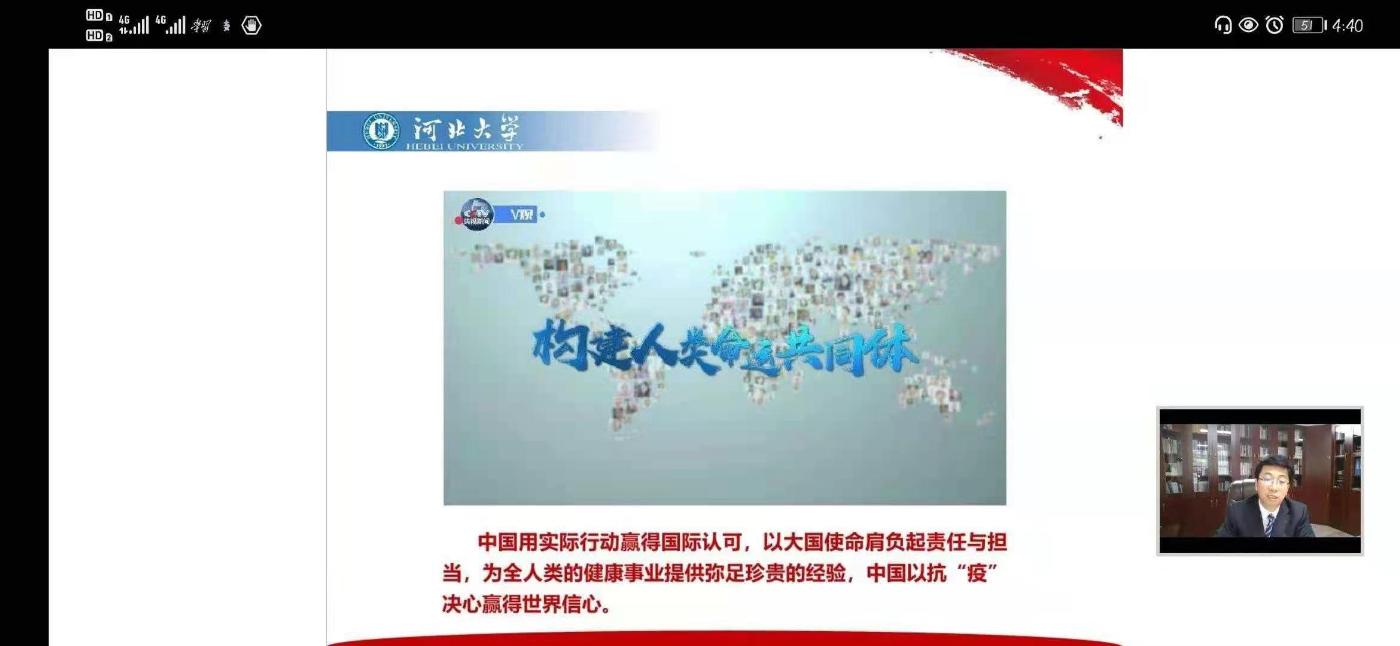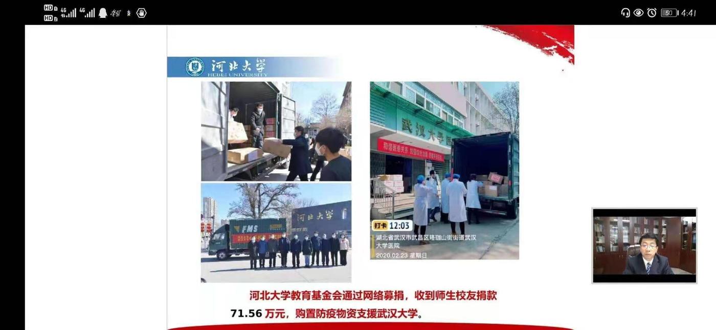 2月28日下午,河北大学党委书记郭健教授以《在常态化疫情防控中书写满意答卷》为题,为全校678名学生团支部书记进行了新学期线上教学第一课。
