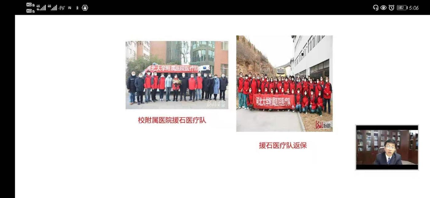 郭健书记在2月28日为我们直播开讲河北大学开学第一课《在常态化疫情防控中书写满意答卷》,围绕“党中央科学决策和省委有力部署是打赢疫情防控阻击战的根本保证”“全校干部职工坚守立德树人、治病救人使命天职是攻坚克难的强大动力”“广大青年学子奉献爱心、勇于担当的品格是战胜疫情的蓬勃力量”三个方面,通过丰富的资料和生动的事例,向我们讲授了党中央团结带领全国各族人民进行的伟大抗疫斗争,讲述了河北大学师生员工的抗疫故事。