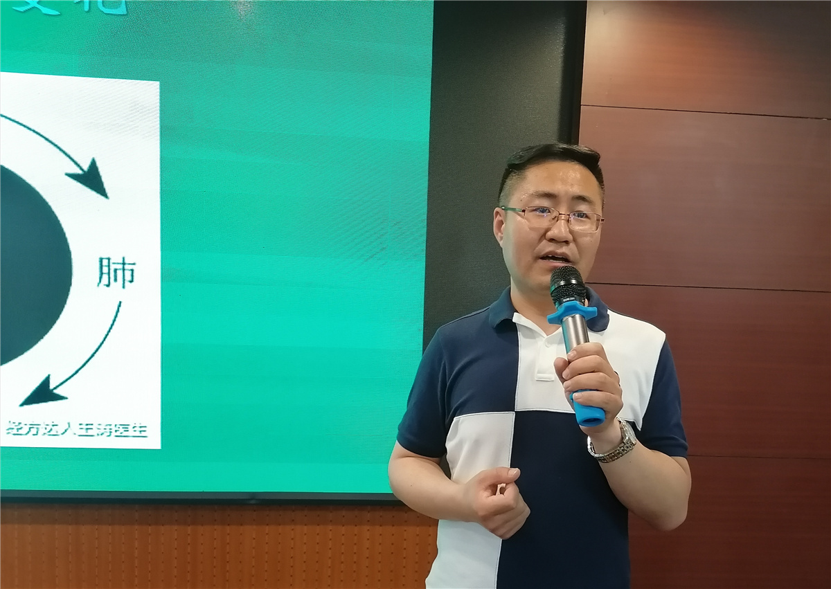 提及夏季养生保健,王涛说随着气温逐渐升高,即便体感炎热,自己和家人一定也不要贪凉。第一,不要过度食用从冰箱、冰柜里取出的冰凉食物。如啤酒、冰激凌、冰镇果块等。更不要为了急速降温,习惯性在饮品或热的食物中,直接加入冰块食用。第二,高温时,室内空调温度尽量不要低于26度。晚上休息时,不要长时间开放空调冷气。王涛强调,无论饮食还是起居,贪凉是一种习惯,需要有意识、有行动地去纠正。躯体长时间受寒,会诱发疾病隐患,现在四十岁,可能没有太多躯体不适感受,但随着年龄增长,十年、二十年以后,受寒者与没有受寒者相比,疾病发病率相对要高。课堂后王涛为部分职工进行了中医义诊。