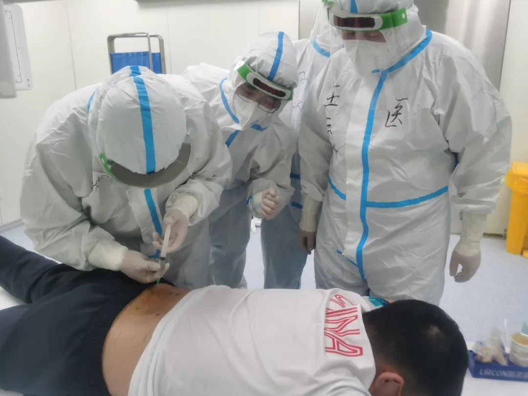 中国代表团一位单板滑雪U型场地技巧运动员,因腰部疼痛明显影响训练和比赛,预约来综合诊所就诊。副医疗官、骨外科一病区副主任王晓冬,骨外科一病区主治医师高飞和郭浩辰为这名中国运动员诊疗。王晓冬、高飞在详细查体后,与中国代表团队医会诊,结合患者自带腰椎核磁检查结果,考虑该队员存在腰椎间盘突出,腰肌劳损,棘上韧带炎。在X线影像下定位,高飞进行了局部封闭治疗,治疗后这位中国运动员疼痛症状当即缓解。中国代表团队医表示,我院冬残奥会医疗保障队员诊断准确,治疗精准,基本功扎实,真是名不虚传。