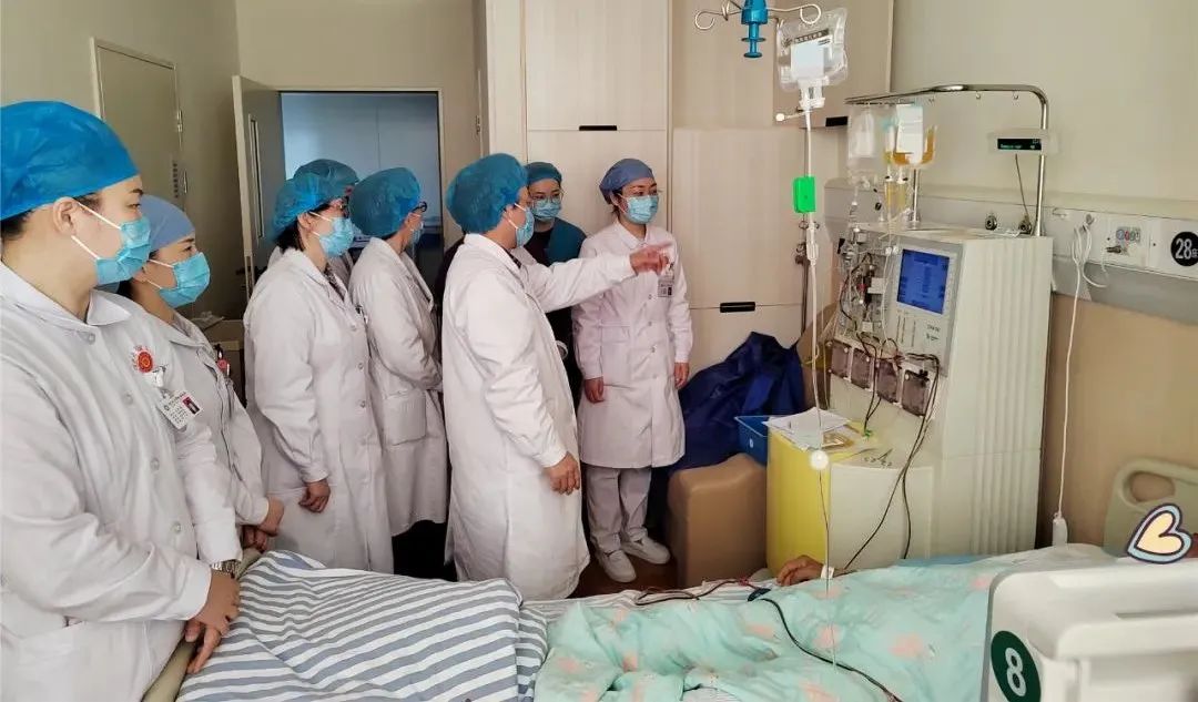 血液内科主任化罗明指导科室人员进行血浆置换工作