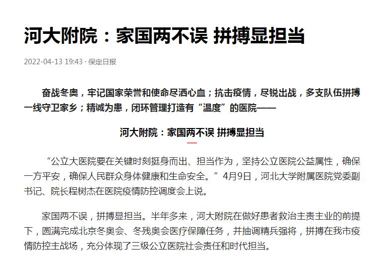 媒体看附院| 保定日报报道:河大附院:家国两不误 拼搏显担当