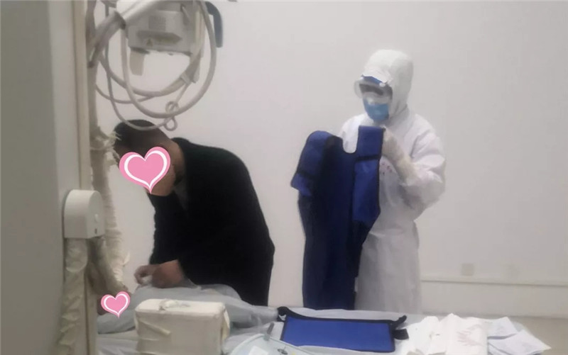 在新型冠状病毒肺炎诊断上,影像检查是必不可少的,它不仅是诊断的一种依据,也是提示病情变化的直观证明。移动DR是最方便、快捷的影像检查方式,不仅无创,检查时间短、射线量更低,条件合适的情况下,能够发现比较早期的炎性病灶。在接到通知后,X线诊断科主任赵建 喜,第五党总支部第2党支部书记、X线诊断科副主任李会超召开紧急支部会议,决定在发热门诊成立放射小组,实行24小时值班制,专门负责发热患者的放射检查工作,并抽调一台移动DR作为影像检查设备,让患者来医院随到随检。