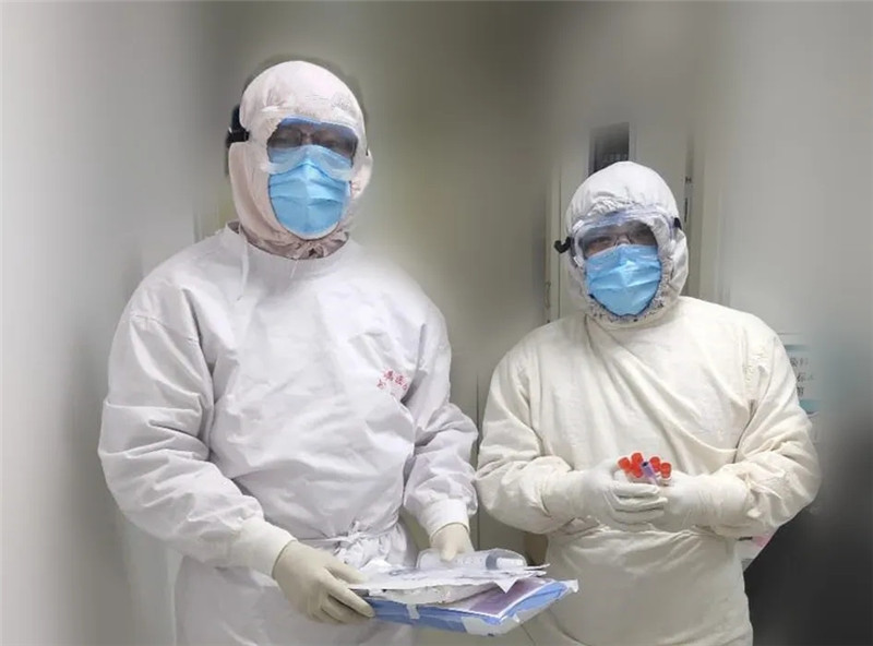 “ 主任,这次支援行动,我报名,家里和科里的事均已安排好,请一定要让我去!”窦征岳看到医院支援隔离病房通知后,第一时间与科主任联系,主动请缨。“我是科里有创性操作治疗的骨干,在心包穿刺、胸腔穿刺以及中心静脉穿刺上有丰富的经验,需要排查的患者难免会合并胸腔积液,我去最合适。”事实确实如此,在隔离病房里,一些有创性的操作治疗他都抢在最前面。在隔离病房里,有位明确的接触史发热患者,在检查时发现患者肺部炎症,左侧胸腔积液,有明显的气促,窦征岳紧急联系超声科,定位后准备穿刺。胸腔穿刺是一个很平常的操作,但在隔离病房里,必要的防护条件给穿刺增加了一些难度和障碍,常规隔离是2层手套,穿刺时还要多加一副无菌手套,满是蒸汽的护目镜,在拿细小物品时增加了难度,尤其是锐器。因要留取胸腔积液标本,需缓慢放胸水减症……整个操作下来,贴身衣服已被汗水浸湿,汗水流入眼睛里,刺激得生疼,同时带着近视镜和护目镜,脸部被压得很不舒服,他只能忍着。穿刺过程由窦征岳和同在隔离病房的肿瘤内科副主任宋子正一起完成,胸腔积液引出后患者气促症状明显好转。胸腔积液的抽取为帮助诊断提供了第一手资料,专家组结合积液化验及其他相关检查结果,考虑患者是肺结核,便请结核科同事前来会诊,及时转入结核病区进行治疗。