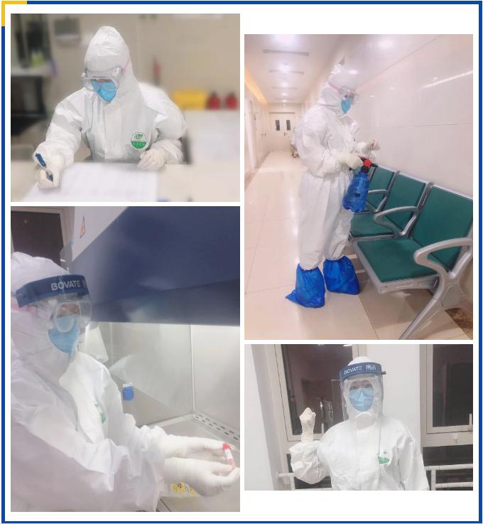 2月19日,是放射治疗科二病区于青第一天正式进入发热门诊的日子,也是她第一次穿这个级别的防护服,且不要说交流,就连正常呼吸都很费力,无奈只有提高呼吸频率,原本简单的工作,都变得缓慢,测体温,挂号,分诊,抽血,陪检送患者住院,消毒,更换浸泡液等,这些治疗和操作对她来说都不成问题,但由于自己突然变得如此“笨重”,因此每个动作都要花上好几倍的力气,更需要格外小心,可以说,每一分钟每一秒,她的每根神经都是紧绷的,生怕出错。