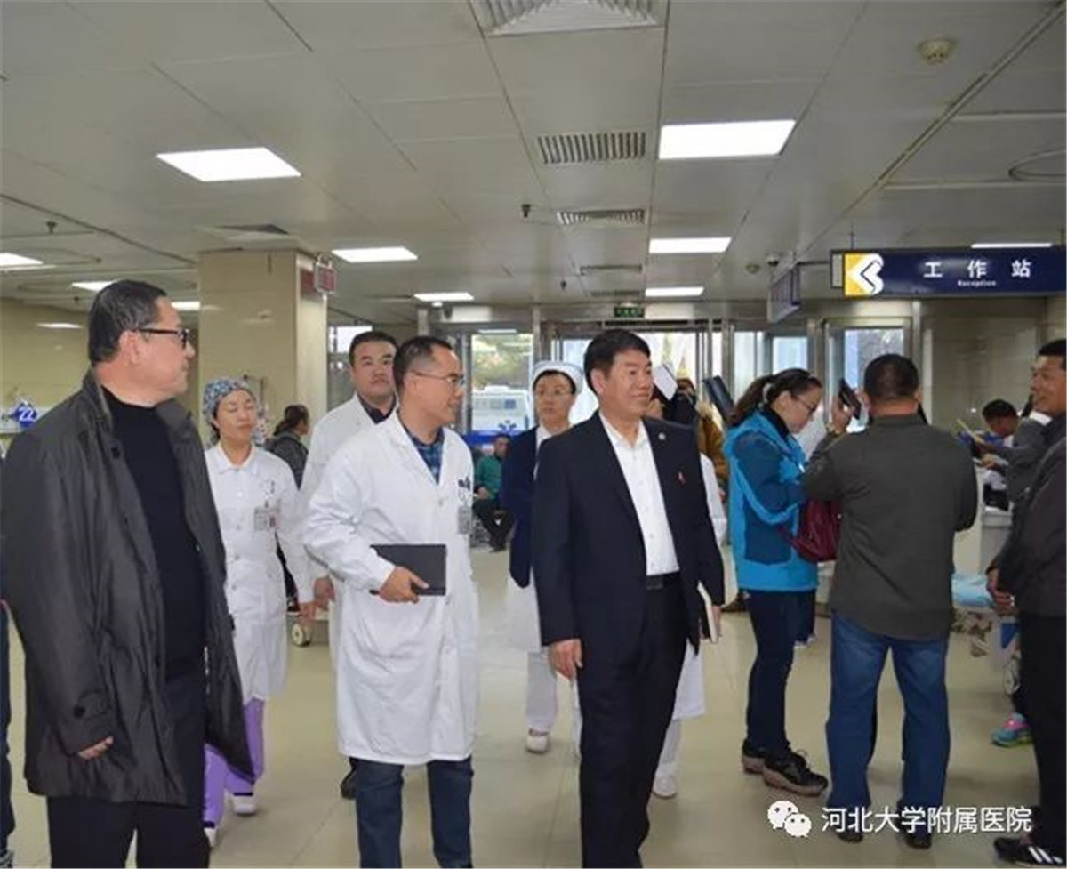 10月23日,河北大学副校长、附属医院党委书记申世刚走访了医院急诊医学科,开启“书记走基层”活动。党委副书记陈冰、第二党总支部书记陈健以及党办室工作人员随同调研。