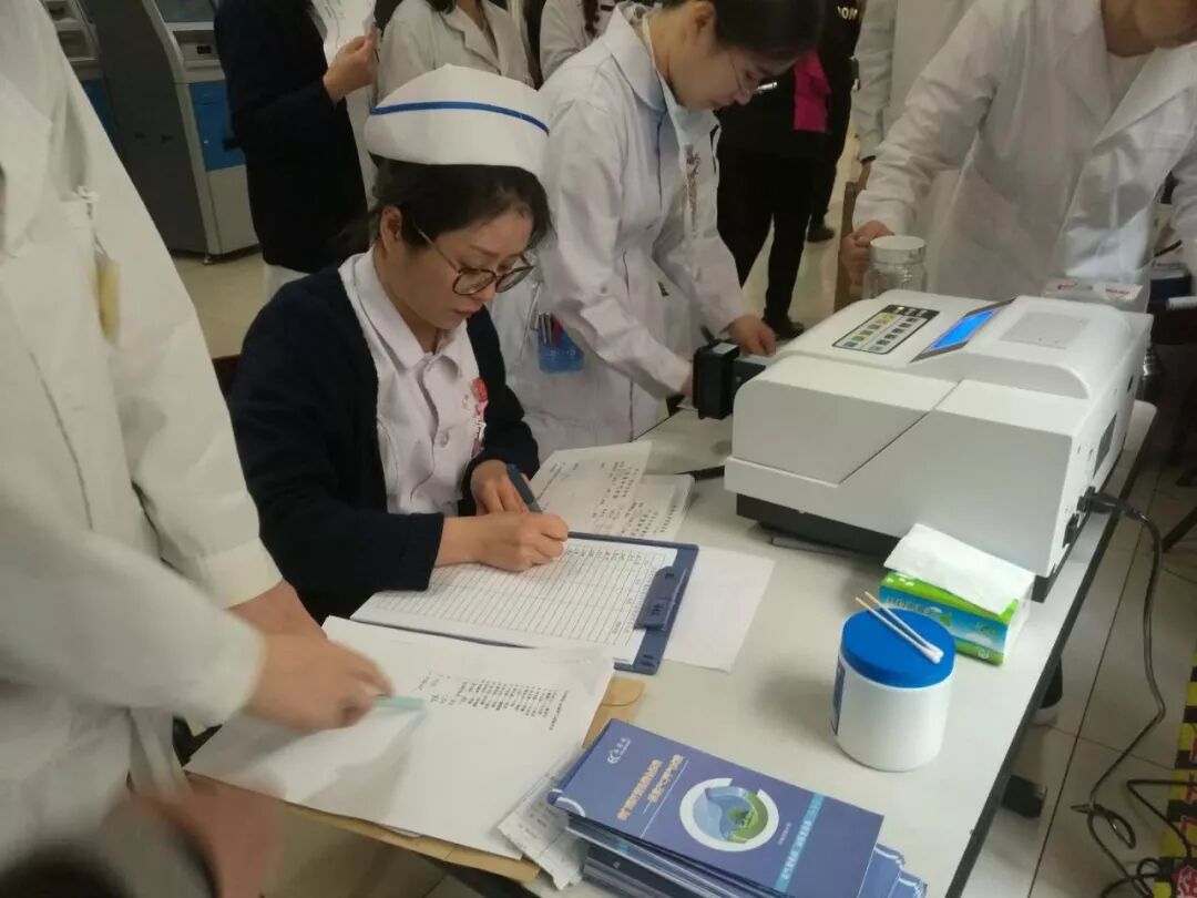 消化内科护士长尹玲带领护理团队为参加活动的百姓检测14C呼气试验。