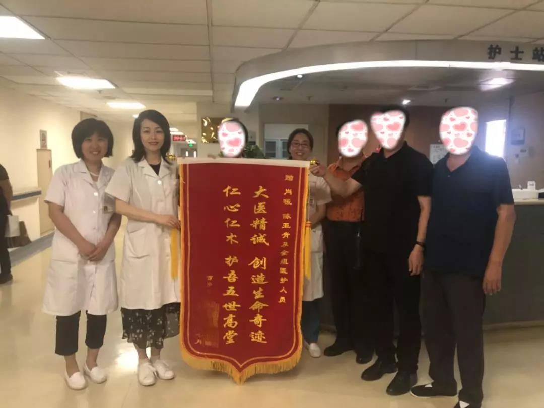 “真是太感谢你们了!”近日,在我院老年医学科病房发生了这样感人的一幕,一位102岁的老人在家人的陪伴下将一面绣有“大医精诚 创造生命奇迹 仁心仁术 护吾五世高堂”的锦旗送到老年医学科主任肖暖手中,表达了对老年医学科全体医护人员的感谢。据悉,这位老人出院前刚刚迎来他的玄孙,一家人五世同堂。