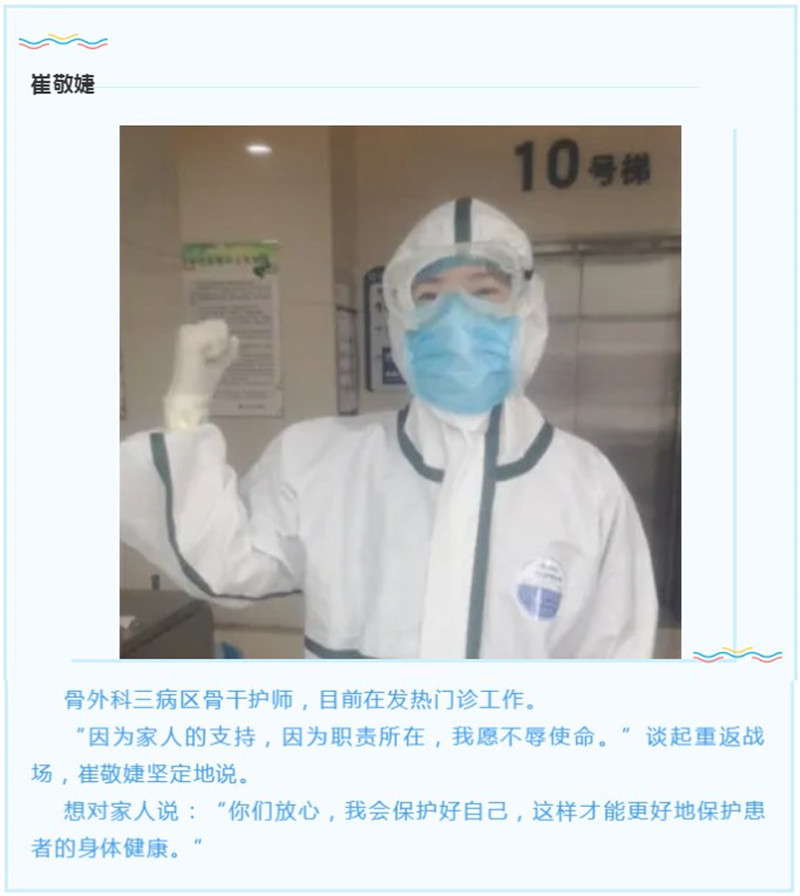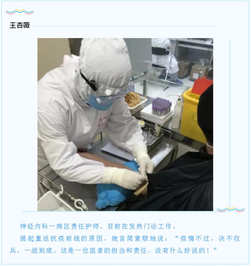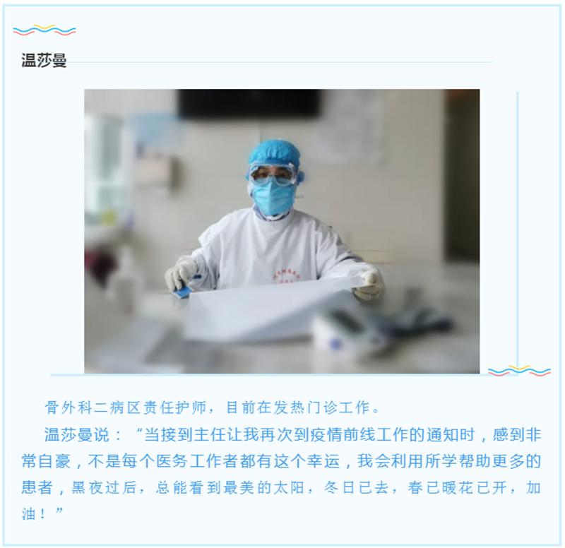 在我院发热门诊我们看到了一些熟悉的身影,这曾是他们的战场,现在,他们身上硝烟未散,却再一次毅然选择,逆行而上重返战场。为什么再一次选择“逆行”?他们的回答普通而平凡却温暖着我们的心。