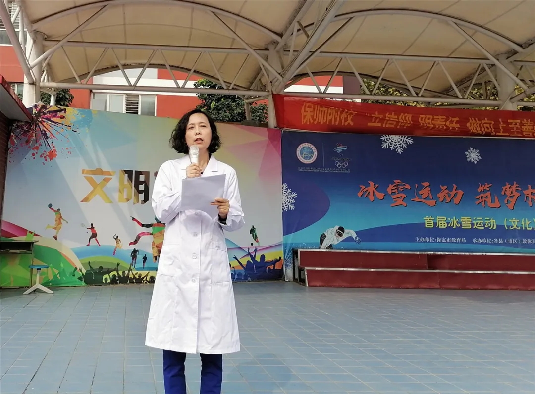 9月28日,“保定责任”健康专家、河北省近视防治专家组成员、河北健康学会体育医学融合与健康管理分会会员、我院眼科副主任医师李军走进河北保定师范附属学校,在升旗仪式中,以讲解近视危害与防控的方式,为全体学生送上国旗下眼健康寄语。保师附校副校长孙宁宣布初中生家校眼健康科普宣讲大赛启动,保师附校副校长高彦芹宣布小学生家校眼健康科普绘画大赛启动。