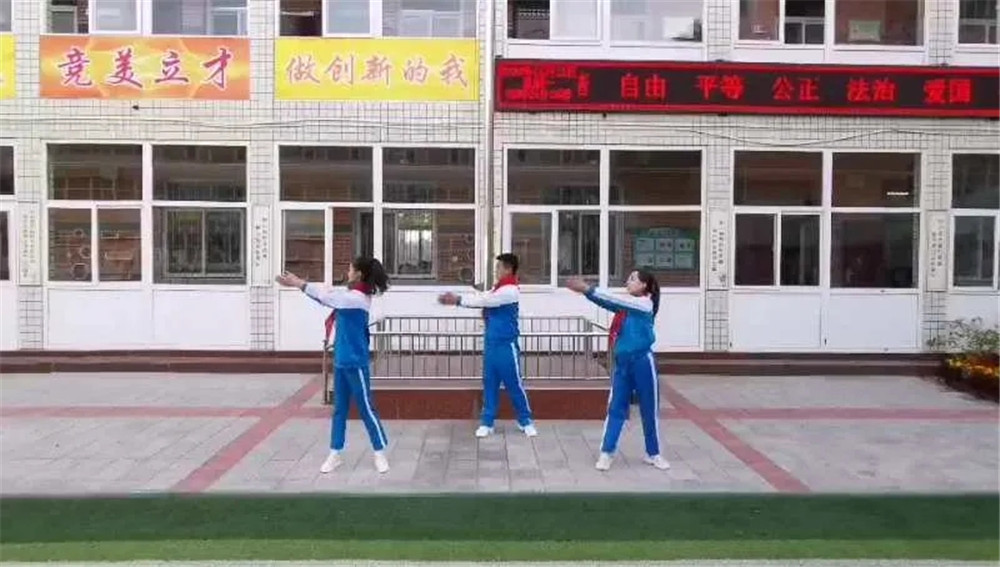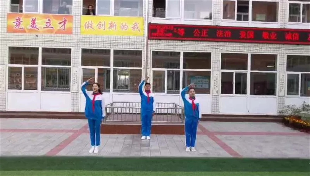 “我们是共产主义接班人,继承革命先辈的光荣传统,爱祖国,爱人民,鲜艳的红领巾飘扬在前胸。”在中国少年先锋队队歌《我们是共产主义接班人》的歌声中,踏步、队礼、伸展、体侧、体转、跳跃、整理等十余个动作协调连贯,优美舒展。运动中,在保障小学生身体素质达标的同时,通过向远方眺望放松眼部,躯体拉伸放松颈腰部,促进小学生建立科学的健康学习生活习惯,茁壮成长。“为着理想勇敢前进,我们是共产主义接班人。”在和着歌声的运动中,展现出争做有健康、有理想、有道德、有文化、有纪律新时代好少年的精神风貌。