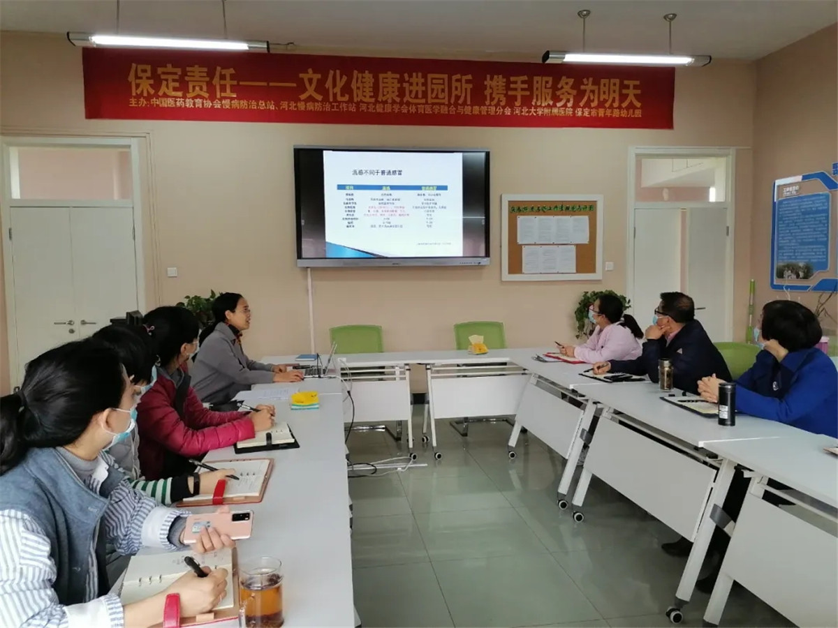 10月30日上午,“保定责任”健康专家、我院儿科主任柏金秀,“保定责任”公益文化健康服务平台策划人、中国医药教育协会慢病防治工作总站秘书长魏巍走进保定市青年路幼儿园,以《2020秋冬季学龄前儿童生活保健及疾病预防》为题,于现场及园所钉钉群直播方式面向幼儿教师、全体幼儿家长,进行公益文化健康讲座。
