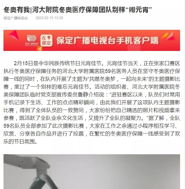 保定广播电视台手机客户端|冬奥有我|河大附院冬奥医疗保障团队别样“闹元宵”