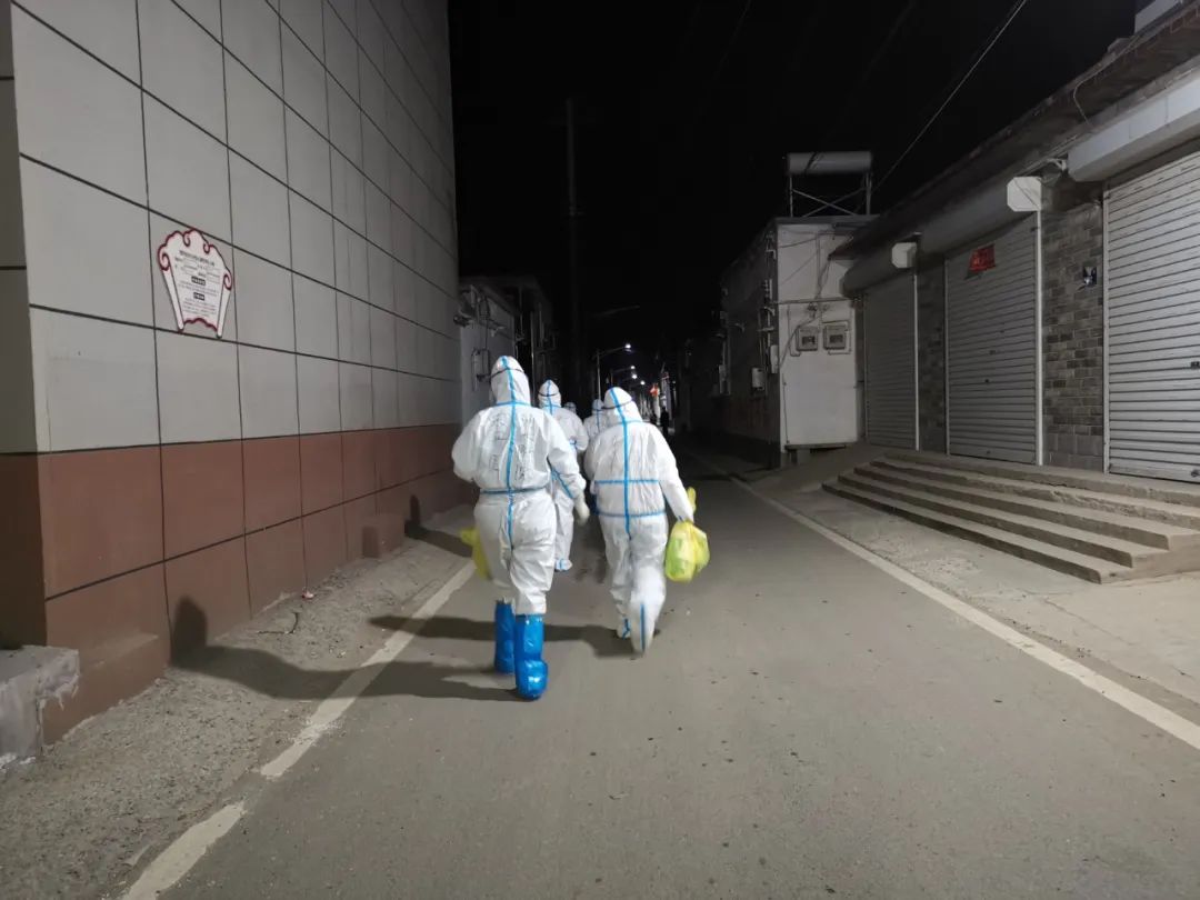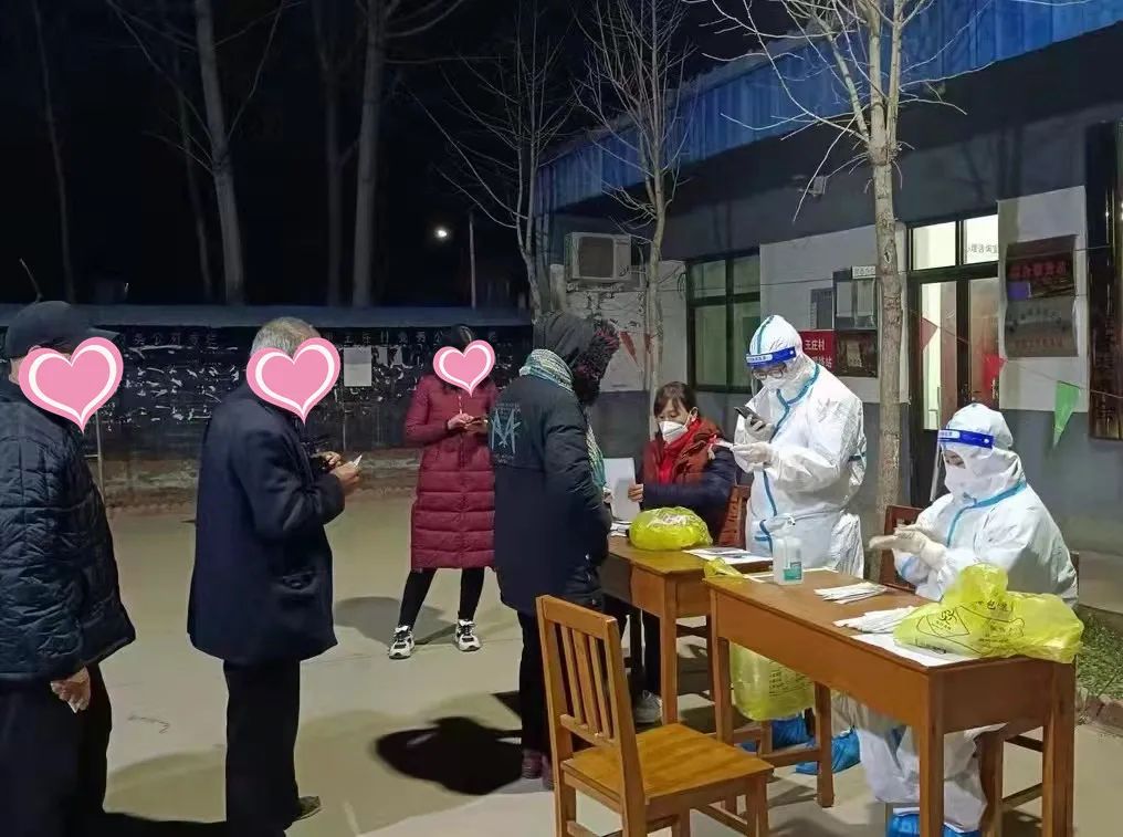 抵达博野县程委镇已是深夜23点45分,我院核酸采样护理团队是最早抵达博野的专业支援团队。在领受明确任务后,我院核酸采样护理团队40名队员披星戴月分组奔赴程委镇的20多个自然村设立的核酸采集点对全镇居民进行核酸采样,我院核酸采样护理团队队长许越巍介绍说:“疫情防控不能等,核酸采样必须争分夺秒!我们的首战任务是在最短时间内完成全镇20多个自然村3万余名群众的首轮核酸采集工作。”很快,在程委镇的20多个自然村核酸采集点出现了身着防护服的我院“大白”展开核酸采样工作。我院队员们克服陌生环境等困难,仔细核对群众身份,向村民解释与告知配合方法,精准完成标本采集,细心做好处理与核对,耐心解答群众提出的各种问题,终于在4月2日凌晨6时完成了程委镇20多个自然村所有村民首轮核酸采样,许越巍回忆说:“时值初春,后半夜温度降到了零下5度,队员们由于身穿防护服,里面不能穿厚衣服,室外采样冻得手脚冰凉,浑身不由瑟瑟发抖,但是队员们没有一个人喊冷,采样动作规范不变形。”