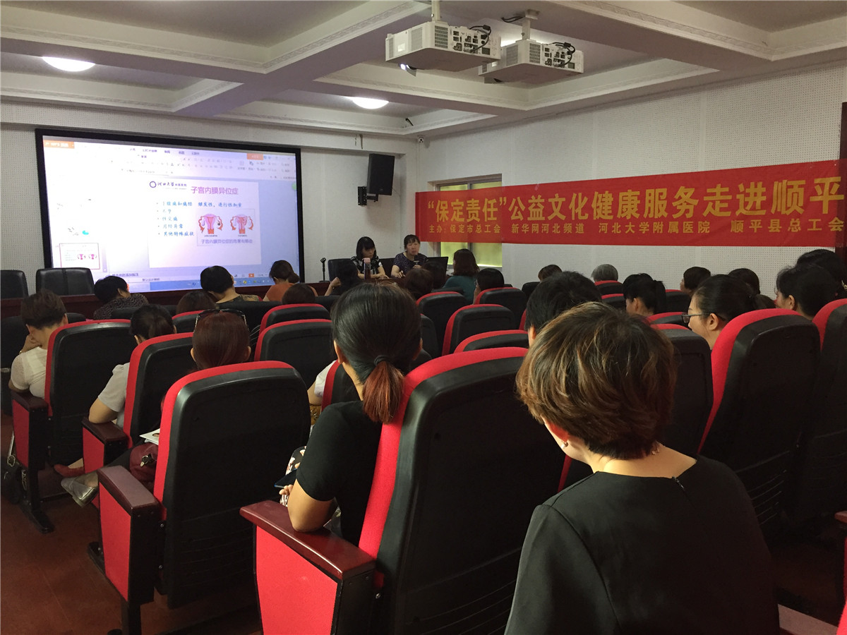 6月29日,“保定责任”公益文化健康服务活动走进顺平县,健康专家、我院妇科首席医师马幼菊为顺平县部分一线女职工进行了“幸福的日子一一关爱女性妇科保健”公益文化医疗讲座。
