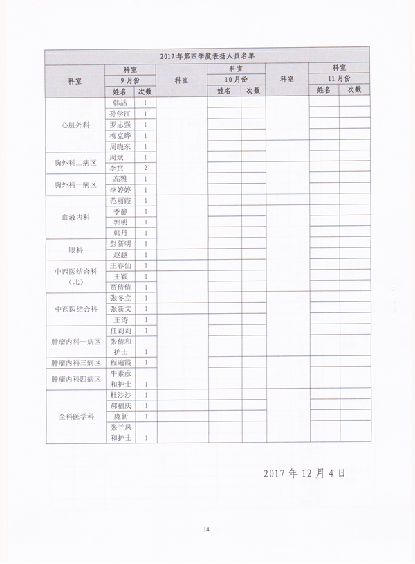 2017年第四季度职业道德(医德医风)情况通报