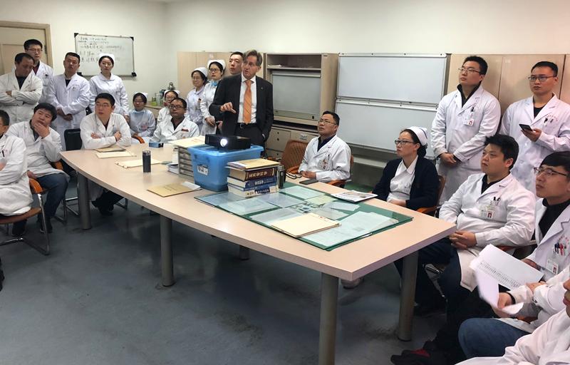 会议期间,焦建宝及医护人员与Prof.Martin Arbogast教授针对膝关节置换假体选择、围手术期抗生素的应用、术后病人康复训练等多个方面进行了探讨与交流。