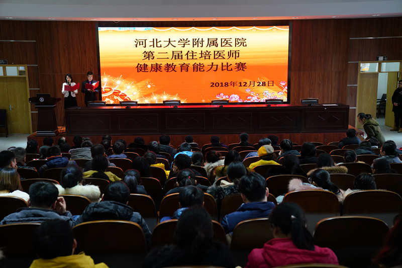 为贯彻习近平总书记提出的实施健康中国战略方针,提高我院住培医师对临床患者的健康宣教能力,促进我院住院医师规范化培训工作的多样化,更好地锻炼学员的表达和沟通能力,增进学员之间的友谊,共同创造良好的学习环境和学习氛围,12月28日,我院举办“河北大学附属医院第二届住培医师健康教育能力比赛”,医学院副院长张春舫出席比赛,消化内科主任医师鲁素彩、内科基地赵学琴主任、外科基地方川主任、妇产科基地梁义娟主任、儿科基地柏金秀主任、放射科基地赵见喜主任、康复科基地杨信才主任出席并担任专家评委,各参培学员班主任根据参赛条件严格筛选、积极组织学员们参加了此次比赛。全科基地肖暖主任、神经外科副主任医师田少辉担任主持。