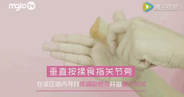 方法很简单,用梳子背部垂直按揉食指关节旁,把手梳热乎了就行。
