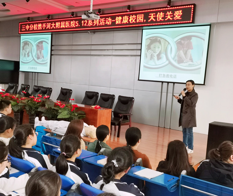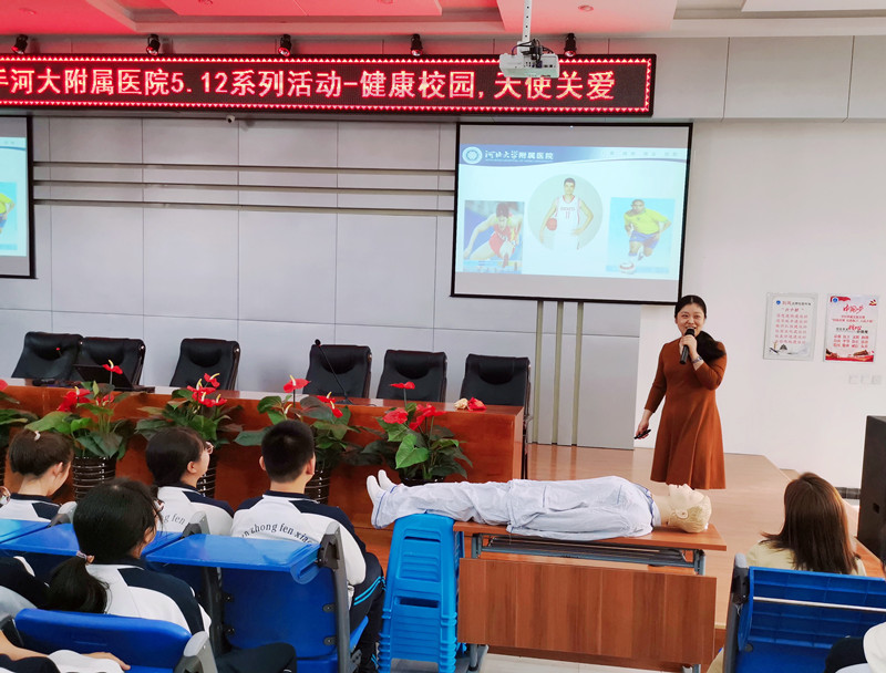 为普及卫生保健知识、急救技能及中医药常识,提高校园中学生自我防病意识和急救能力,在国际护士节来临之际,我院护理部组织了以“健康校园,天使关爱”为主题的健康知识进校园活动。