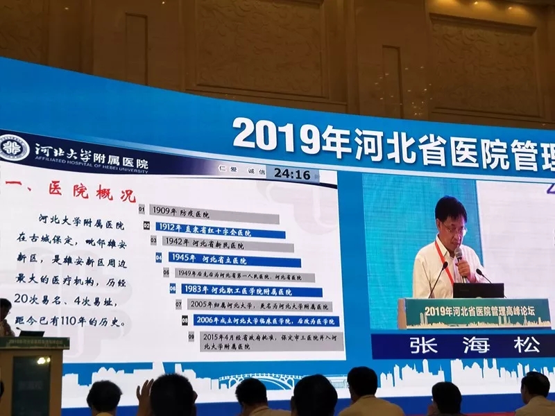 6月1日,由河北省医院协会主办、省卫健委医政医管处支持、河北医科大学第一医院承办的“2019年河北省医院管理高峰论坛”在石家庄举行。论坛由国家与省卫健委领导,省内外知名医院书记、院长及管理专家分四部分进行授课,分别是主论坛及“精益管理与高质量发展 ”“整合医疗与护理团队建设”“管理革新与信息智能”三个分论坛。受大会邀请,我院院长张海松在主论坛作了以《推行卓越绩效模式 促进医院可持续发展》为主题的经验交流。