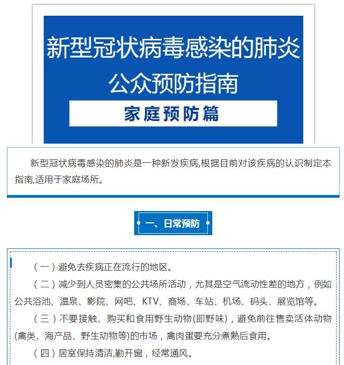 新型冠状病毒感染的肺炎公众预防指南 (家庭预防篇)