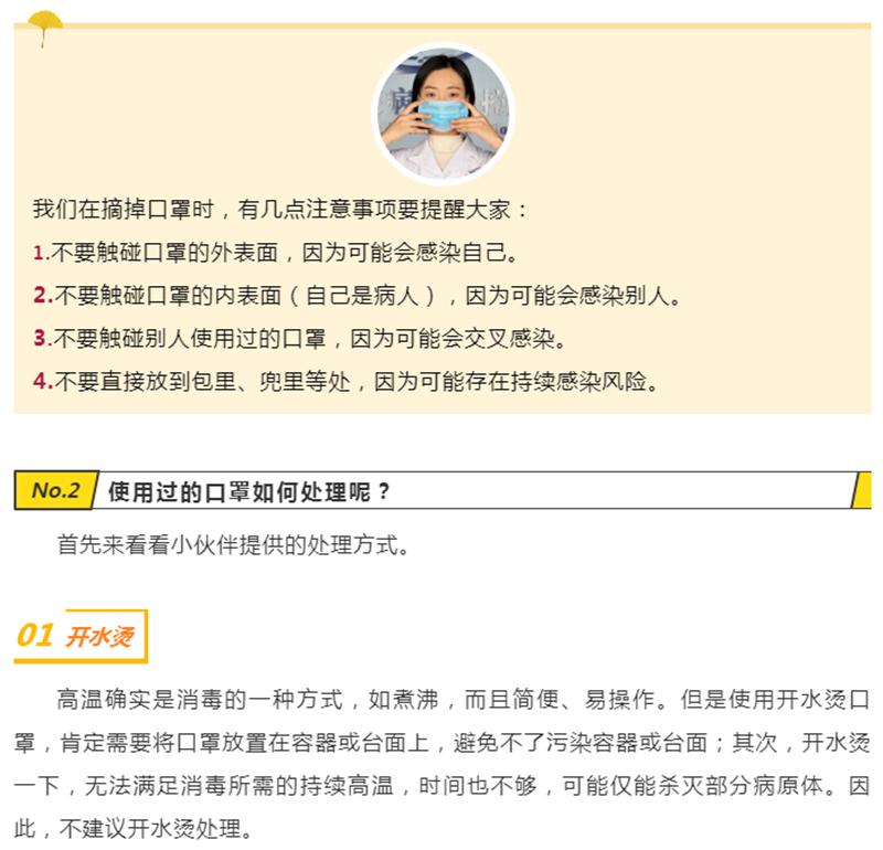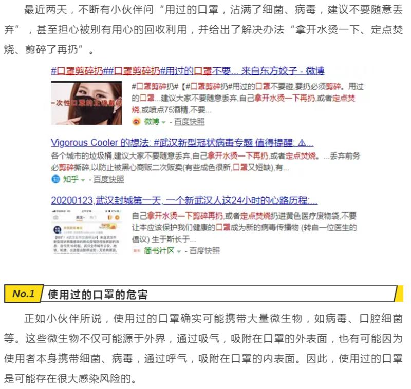 【新型冠状病毒科普知识】使用过的口罩该怎么处理?发布时间:2020/2/4 14:40:00       浏览次数:3887次
