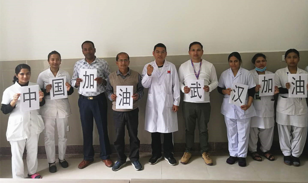 手术成功后,尼泊尔同行更加钦佩马晓勇,赞叹“中国医生了不起!”中尼友谊渊远流长,为了支持中国医生抗击疫情,表达对中国医生的敬意,尼泊尔医生打印了“中国加油!武汉加油!”的汉字,马晓勇面向祖国方向说出了自己的战“疫”心声——我爱你中国!中国加油!武汉加油!