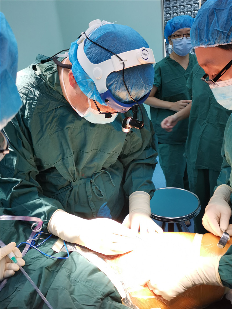 术前,高文山带领团队人员做足充分的手术准备,术中按照术前规划进行,可见股动脉穿过肿瘤组织,并严重粘连,仔细分离股动脉并保护……在大家的密切配合下,手术顺利完成,切除的肿瘤组织约1kg,手术也印证了术中情况与术前3D图像完全符合。术后病理显示,低度恶性粘液纤维肉瘤。现患者恢复良好,已痊愈出院。