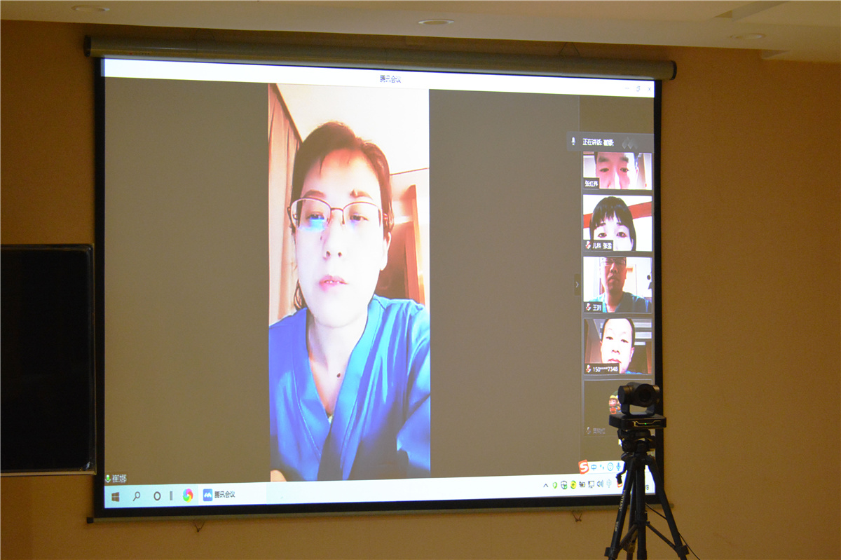 我院全体院领导和医疗队40余名休息队员在线相见团聚,队员们在各自宿舍在线,个个精神抖擞。
