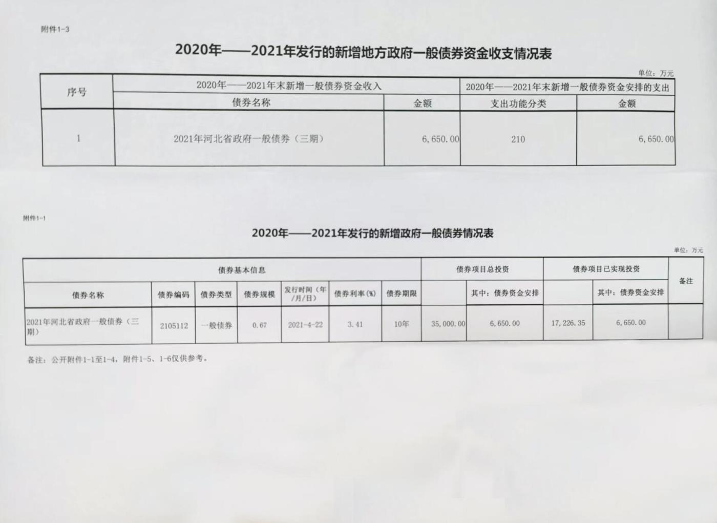 2020年—2021年发行的政府一般债券情况表