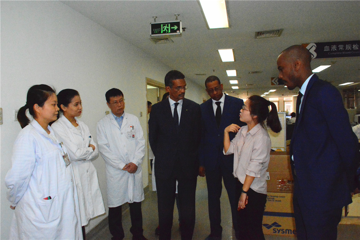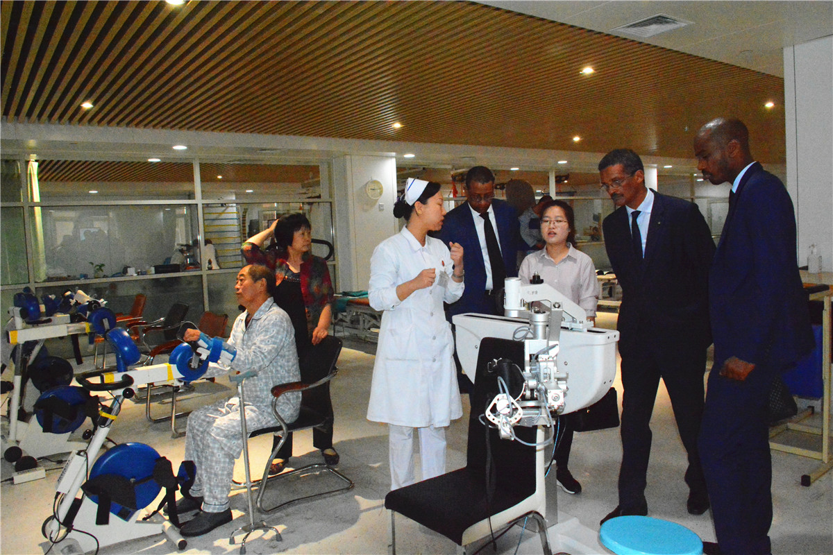 座谈会后,艾哈迈杜?乌尔德?哈欧巴校长一行参观了我院门诊大厅、检验科、康复医学科和心血管内科监护病房。参观交流过程中,艾哈迈杜?乌尔德?哈欧巴校长一行频频称赞我院先进的设备和管理,希望以此次参观访问为契机,搭建努瓦克肖特大学医学院与我院之间交流合作的桥梁,推动学术交流和合作。