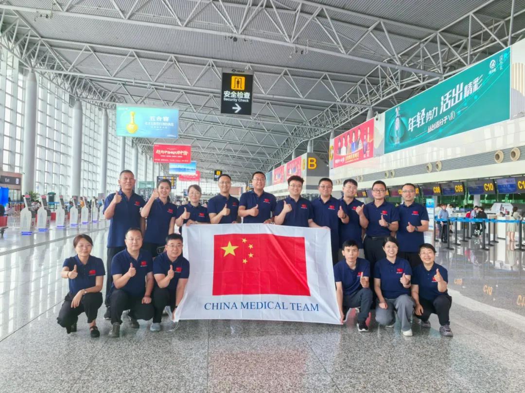 临行之际,院党委书记程树杰,党委副书记、院长李靖华,党委副书记、副院长董斌等领导和同事为我饯行,叮嘱我不忘大国情怀,谨记使命,保重身体,克服困难,圆满完成援外医疗工作,载誉凯旋。在即将阔别祖国之际,每一句贴心的嘱托,每一次真挚的握手、每一个惜别的拥抱,都萦绕于心,让我瞬间泪目,但是 “不畏艰苦、甘于奉献、救死扶伤、大爱无疆”的中国援外医疗队精神时刻萦绕心头,让我踏上这段令我倍感荣耀的征程。