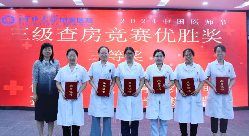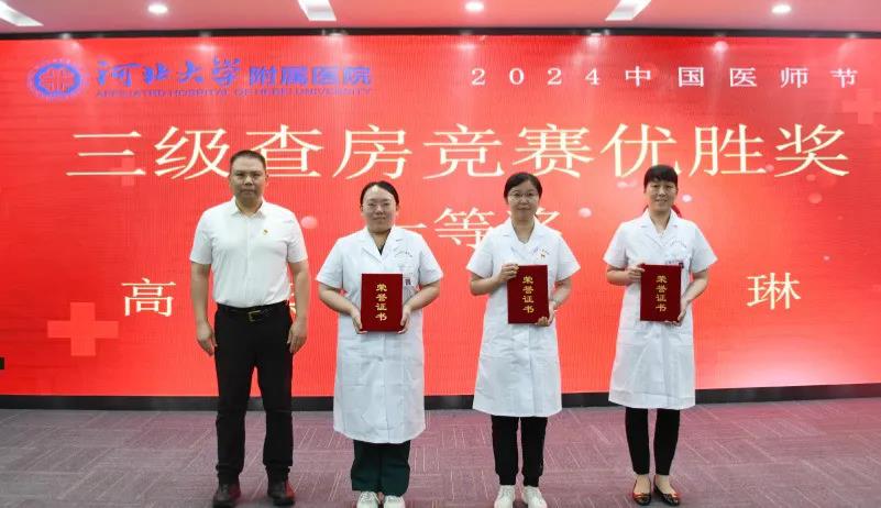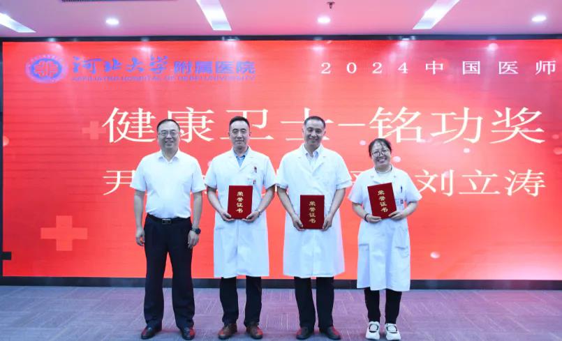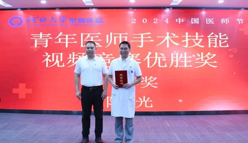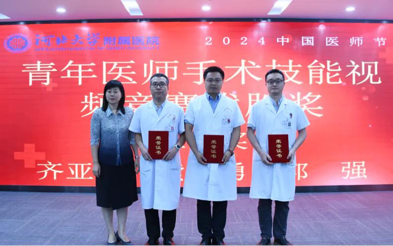 会上,播放了河北大学附属医院2024年中国医师节专题片《医者奋进路》;分别表彰了河北大学附属医院2024年健康卫士——“铭功奖”“铭心奖”“铭志奖”获奖医师;表彰了医院三级查房竞赛获奖科室;表彰了医院青年医师手术技能视频比赛获奖医师,受表彰医师和科室代表进行了发言。会中,医院领导向医院老专家献花,表达了院党委、院领导班子和全院干部职工对老专家的由衷敬意。