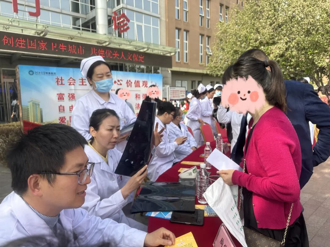 4月15日上午,河北大学附属医院在医院门诊广场举行全国肿瘤防治宣传周宣教义诊活动,保定市抗癌协会理事长、河北大学附属医院党委书记程树杰,保定市抗癌协会副理事长、河北大学附属医院副院长殷小平,河北省抗癌协会肿瘤内科专业委员会主任委员、河北大学附属医院肿瘤内科专家臧爱民和河北大学附属医院肿瘤内科、放射治疗科、普通外科、肝胆外科、胃肠外科、神经外科、胸外科、泌尿外科、乳腺外科、头颈外科、妇科、放射科、病理科、体检中心、医务处、护理部、患者综合服务中心等多学科、多部门的科主任、首席医师和护理骨干为群众宣讲肿瘤防治知识,开展诊疗咨询,受到市民欢迎,一位市民说:“河北大学附属医院胸外科、肿瘤内科、放射治疗科、放射科的主任们一起看了我的胸部CT,给了我非常好的治疗建议,我很满意。”