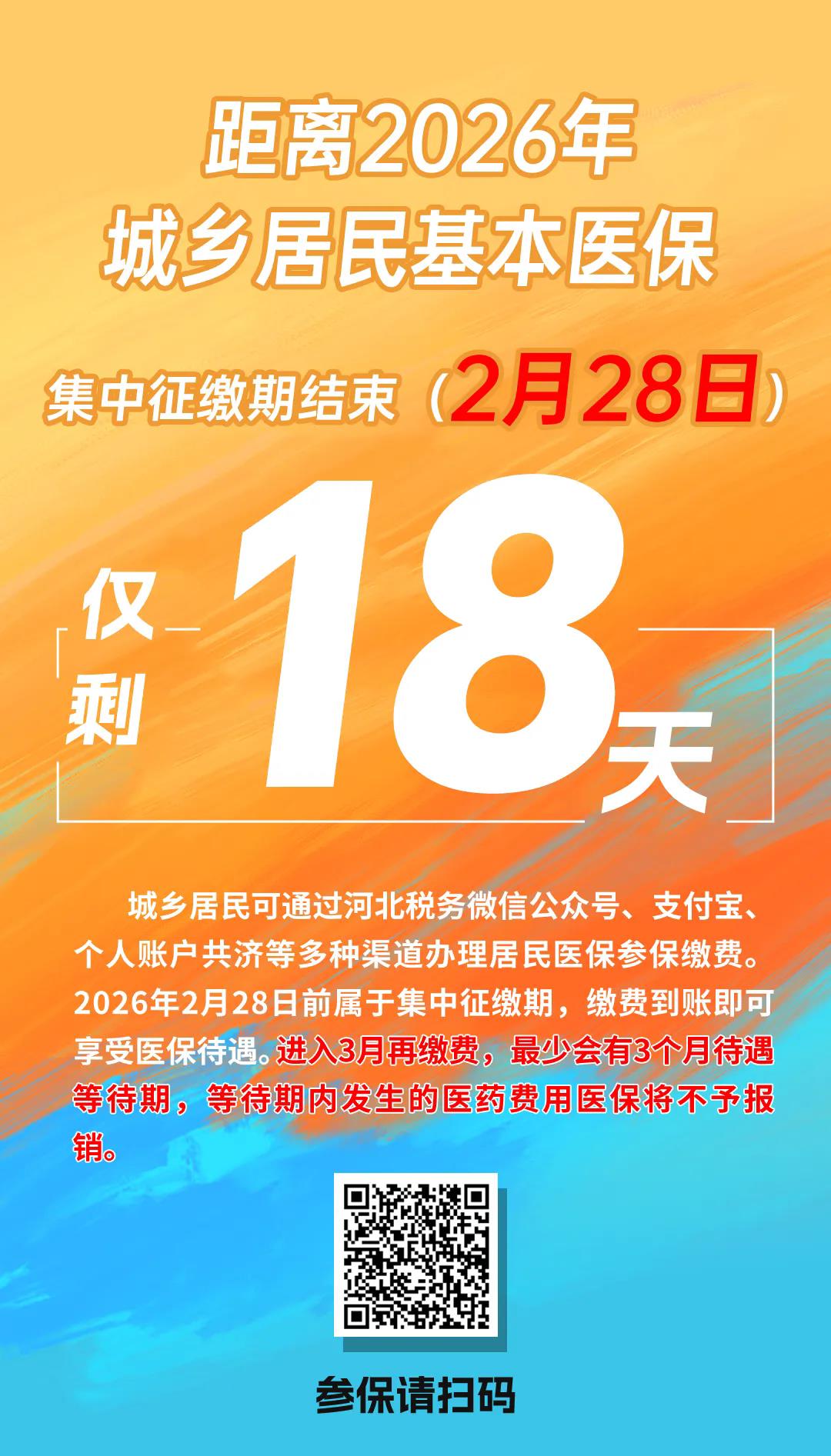 医保惠民宣传| 2026年河北省城乡居民医保集中缴费仅剩18天